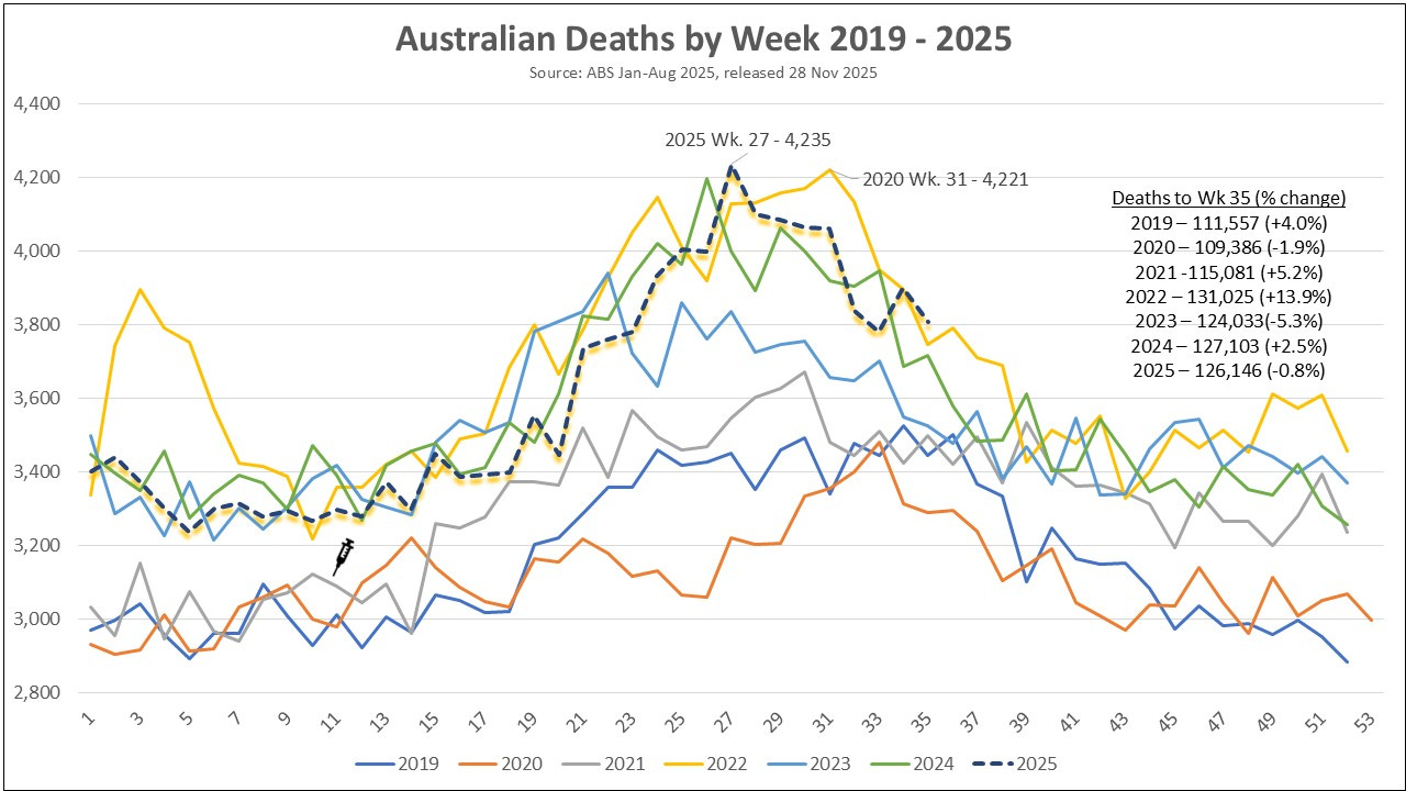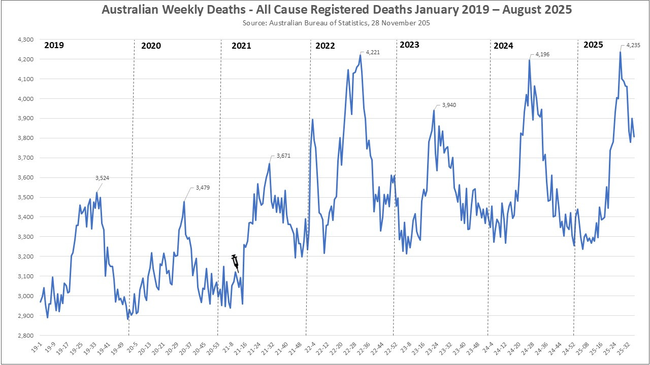 The Australian weekly deaths, Jan 19 - 2025 is an absolute eye opening window to how bad things really are. You totally nailed that graph. Great Job.