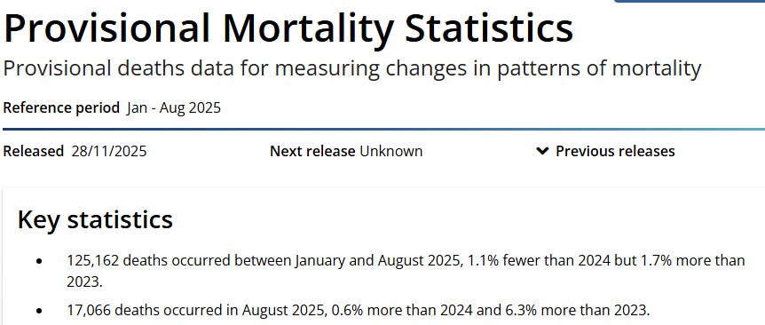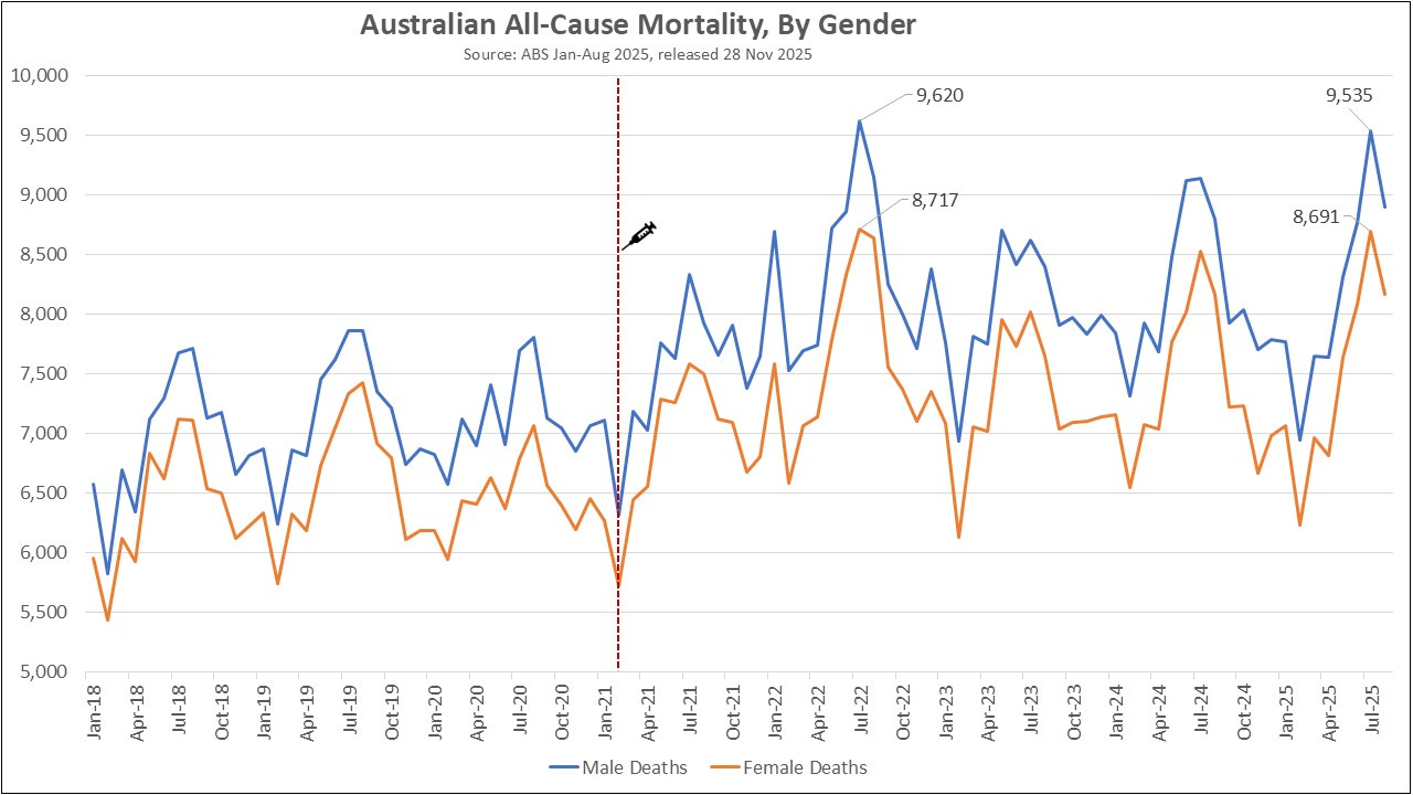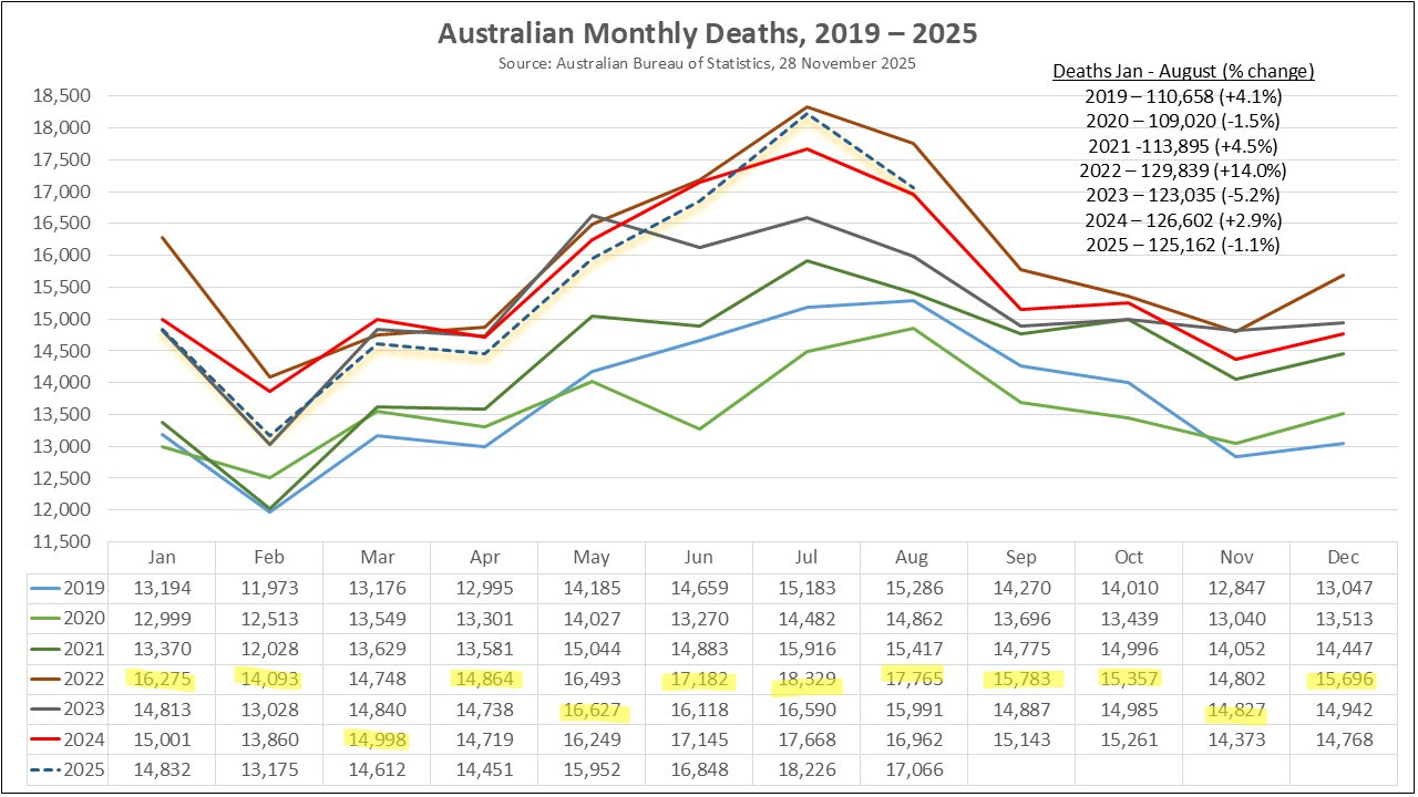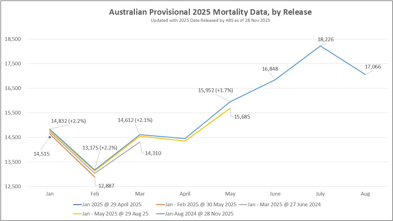 ABS released Australian Mortality Data to August 2025 on 28 November 2025.